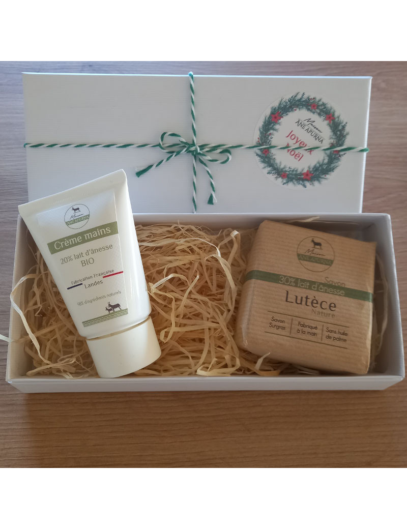 Retrouvez notre savon Lutèce Nature associé à notre Crème pour les mains dans ce délicat coffret prêt à offrir !